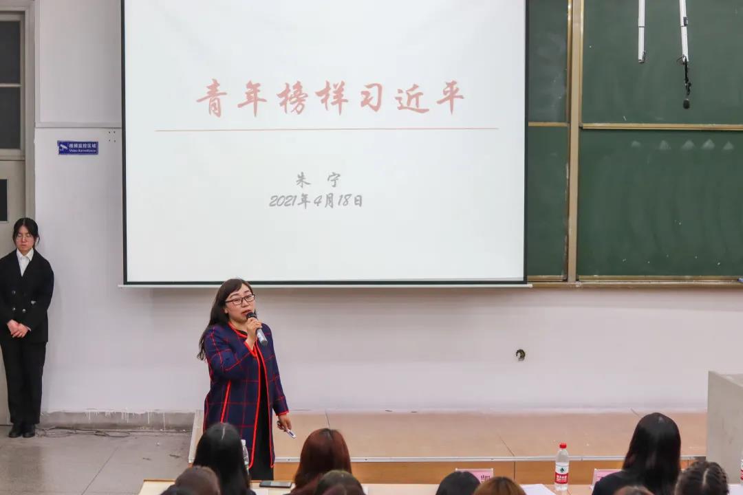 最后,大会第五项,是朱宁老师为我们带来了“青年榜样习近平”专题讲座。朱宁老师通过分享《习近平的七年知青岁月》和《习近平在正定》的读后感,从做个好人是共产党人最纯粹的初心,坚持学习是共产党人自信的来源,勤俭是中国共产党人最璀璨的美德,坚持学习是共产党人自信的来源及解放思想是共产党带领中国发展的动力和源泉这5个方面对学生干部们进行了启发教育。